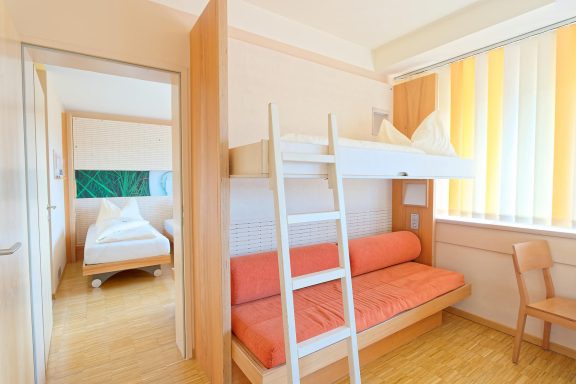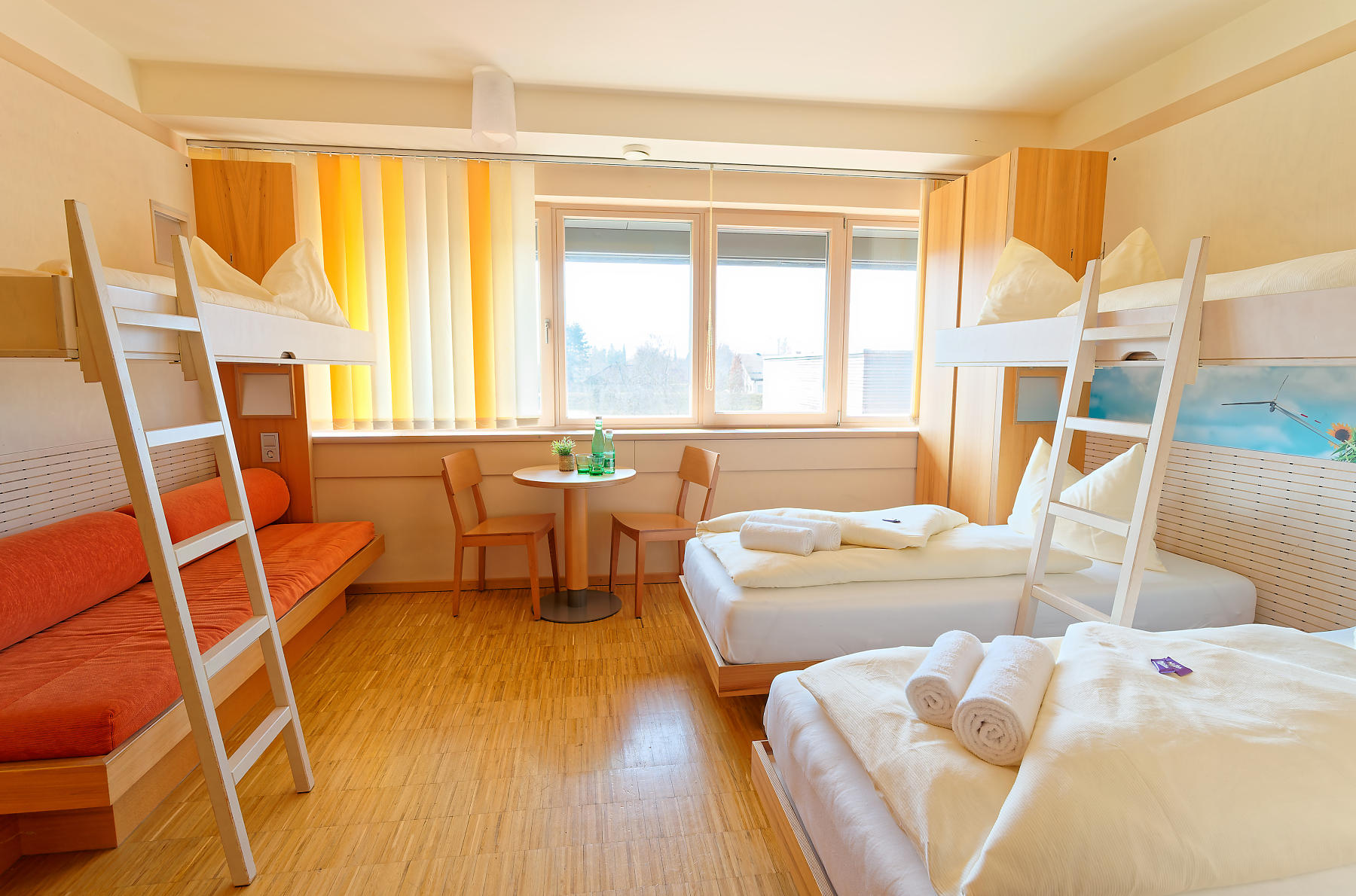 Wahlweise gibt es Doppel-, Mehrbett- und Familienzimmer – ideal für Gruppen, Vereine oder Familienurlaube.