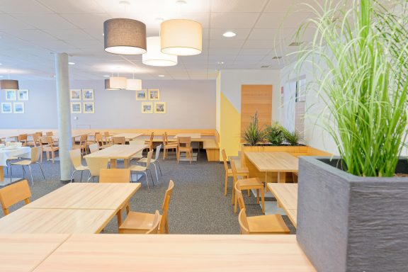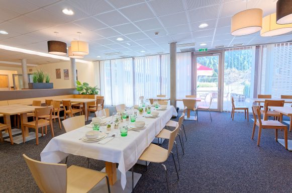 Zum Mittag- und Abendessen erwartet euch ein 3-gängiges Wahlmenü mit Suppe, Hauptspeise (auch vegetarisch/vegan), Salatbuffet und Nachspeise.